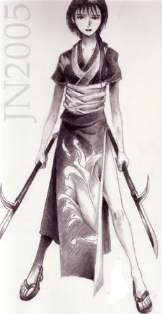 how so uterlly very kewl nyaa her pose ish so kewl-- so are her daggers/swords...they kinna look like big needles