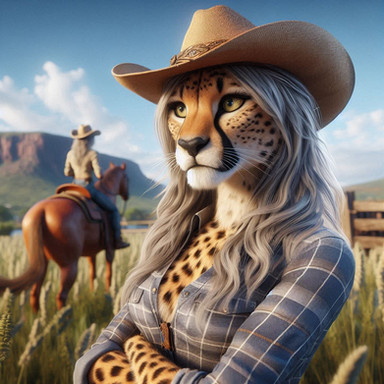 #feline #digitalart #furry #ai #anthrofemale #anthrofurry #anthropomorphic #canineanthro #caninegirl #fantasycharacter #fox #furryart #furryfemale #furrygirl #ranch #ranchgirl