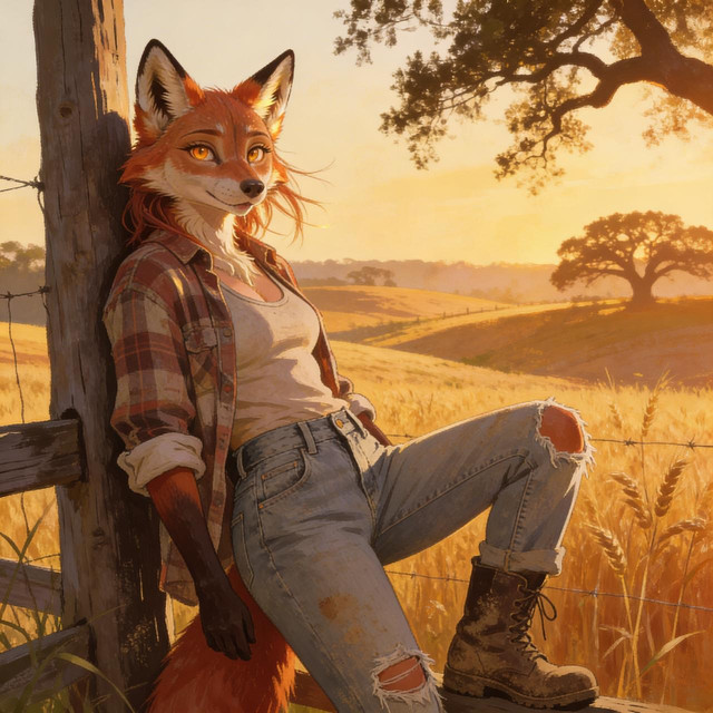 #digitalart #fox #furry #ai #anthrofemale #anthrofurry #anthropomorphic #canineanthro #caninegirl #fantasycharacter #furryart #furryfemale #furrygirl #ranch #ranchgirl
