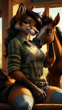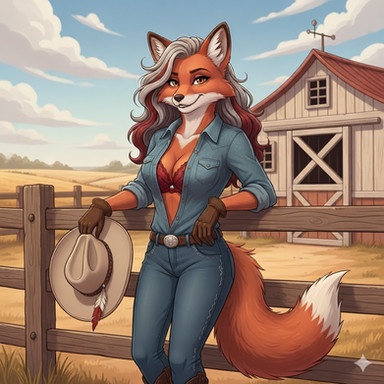 #digitalart #fox #furry #ai #anthrofemale #anthrofurry #anthropomorphic #canineanthro #caninegirl #fantasycharacter #furl #furryart #furryfemale #furrygirl #ranch #ranchgirl