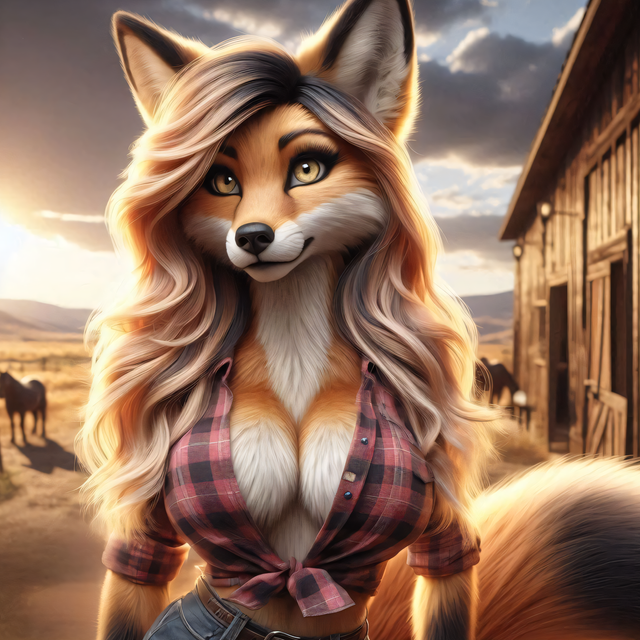 #fox #digitalart #furry #furryfemale #ai #anthrofemale #anthrofurry #anthropomorphic #canineanthro #caninegirl #fantasycharacter #furl #furryart #furrygirl #ranch #ranchgirl