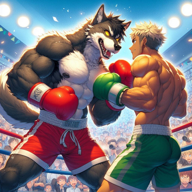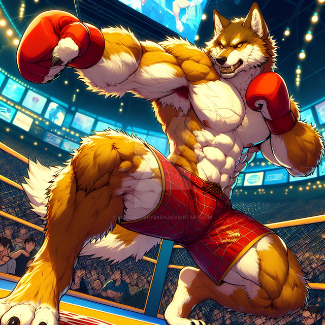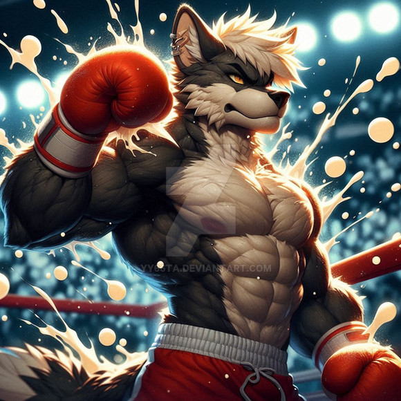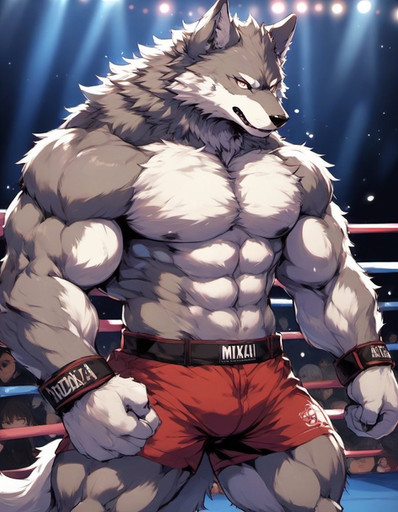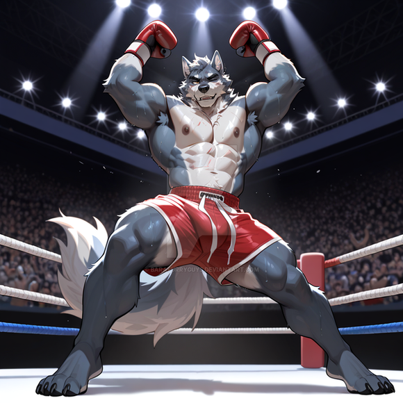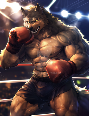 #anthro #boxing #fighting #furry #wolf #anthromuscles #hypermuscles