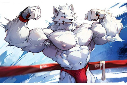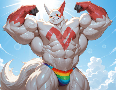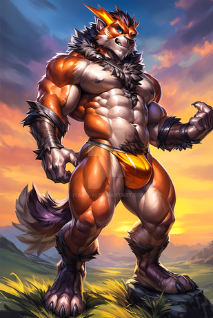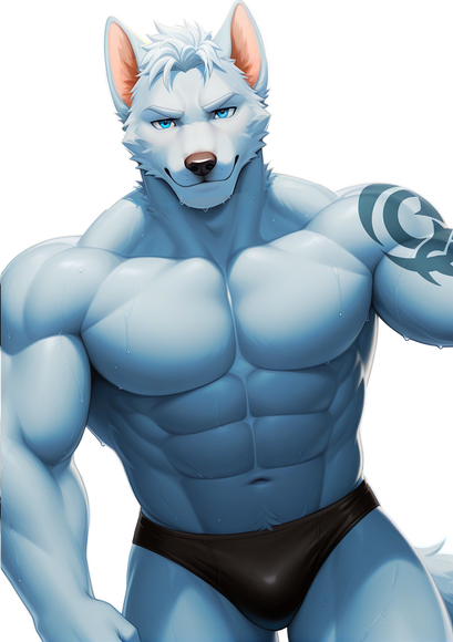 #anthro #buff #bulge #furry #muscle #musclegrowth #wolf #ai_generated_art