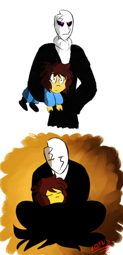 Aaa... I don't like this drawing of mine, but I wanna share my headcanons with you guys! D8>Anyway, I personally think that Frisk was made by Gaster, he must've been around when [Chara], the first human fell down, interested, he decided to make a human inspired by the previous human? Something like that.. IDK anymore. I'm having so much trouble making a paragraph in English right now.Β