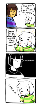 I laugh my SOUL out seeig this! By the way, the shipping name for Chara x Frisk is Charisk (I guess)