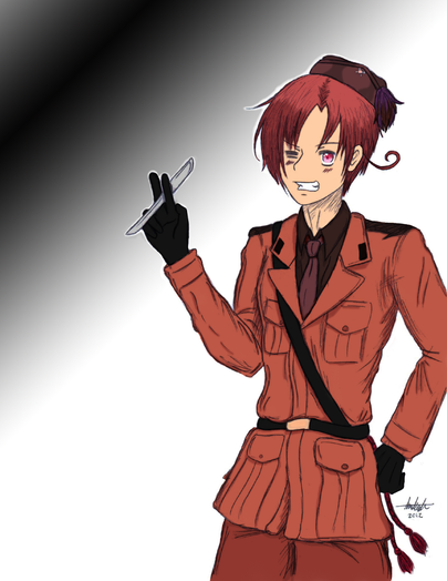 Hmm, I wonder what would happen if I shot myself? Prussia says that it heals quickly, but he's been in wars for a while, though. Maybe. I should go ask Spain......Nah, then he'd take the gun away, but wait, what if something happens to Southern Italy if I shoot myself? And wait, then that idiota brother of mine would cry again! Damn it, too many problems!