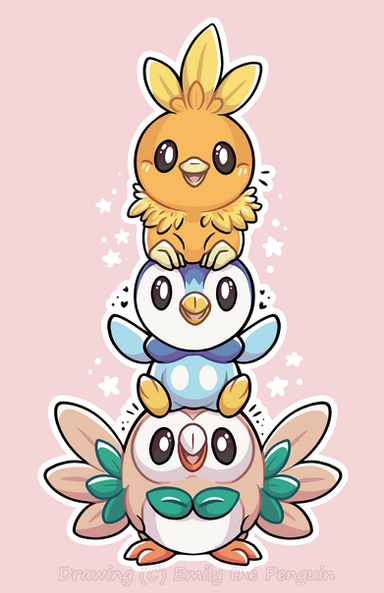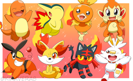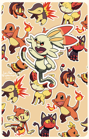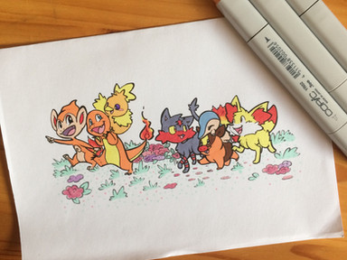 Finished this drawing of the fire starters earlier! Grass and water are up next! ^-^Instagram Tumblr Etsy Commissions