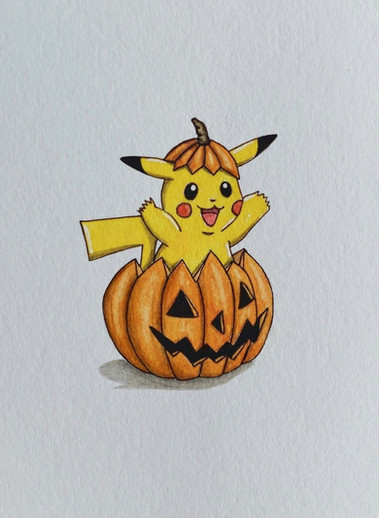 #copic #halloween #kanto #pikachu #pumpkin #videogame #copicmarkers #fanart #pokemon #traditionalart #pokemonhalloween