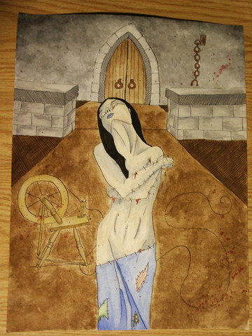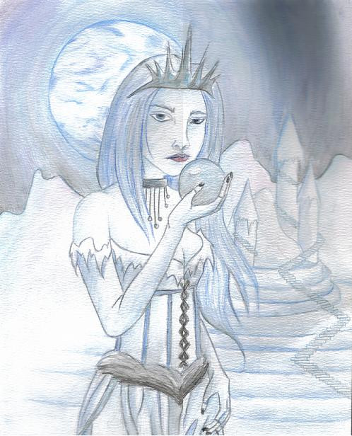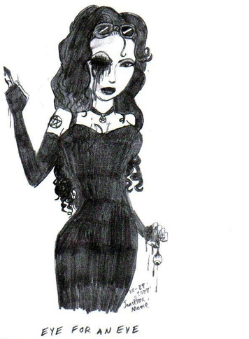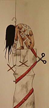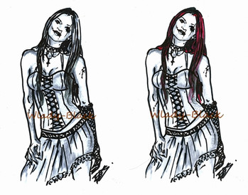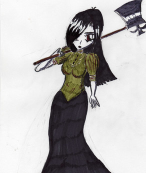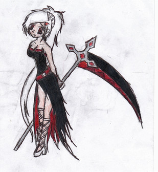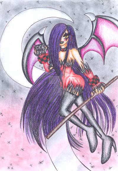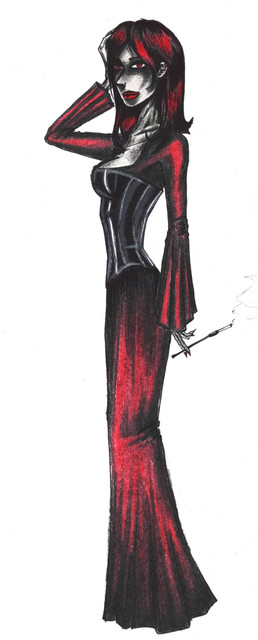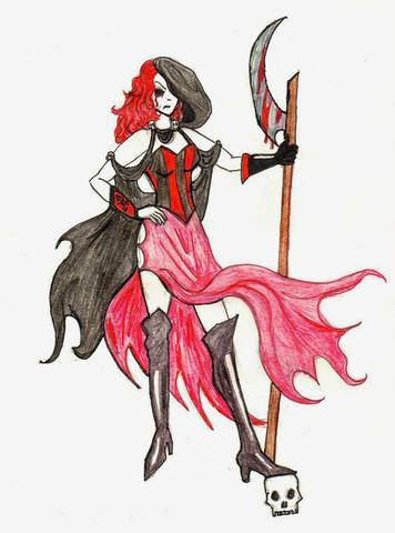 Ink and red colored pencil. It's the female version of Death. I like her costume better.Related content