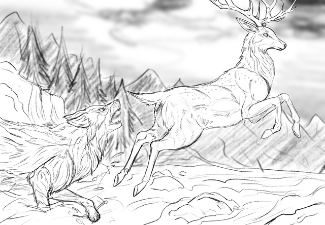 #deer #direwolf #ipad #landscape #procreate #wolf #digitalpainting