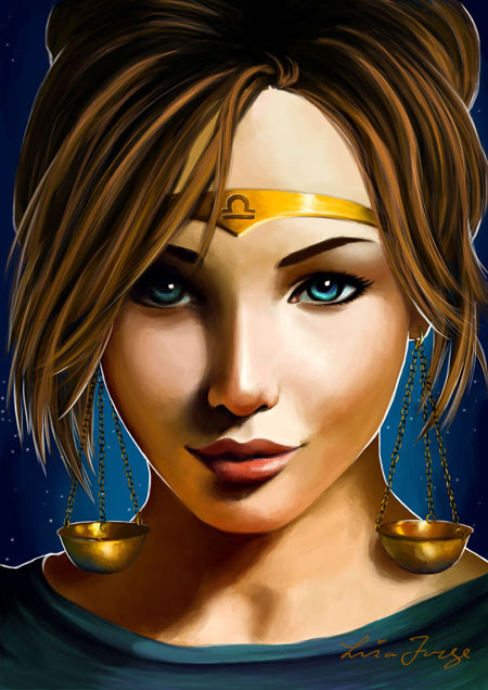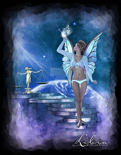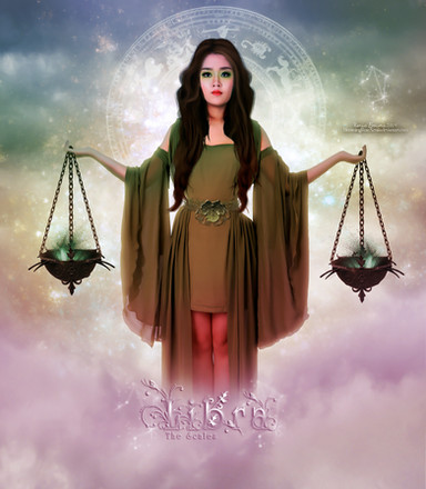 As with its symbol, the scales, Libra natives desire and seek balance in their lives. They value fairness, equilibrium, and most of all peace. Many are people who tend to try to be everything to everybody and to avoid rocking the boat at all costs in an attempt to achieve and maintain peace in their lives and in their relationships with others. Librans are known for being intellectual, sociable, easy to approach, and cooperative. However, they also tend to have a reputation for riding the fence, being wishy-washy, and doing just about anything to avoid taking a stand. Many Libra natives must also take care not to fall into a habit of dishonesty or duplicity. In theory, they despise such tactics, but when it's in the name of peace, many seem to feel anything is justified. People with Libra suns also tend to think in relative or comparative terms. Many are also refined individuals with a great appreciation for beauty and the arts.Stock used to help create this piece comes from *flaviacabral for the figure and sxc for everything else.