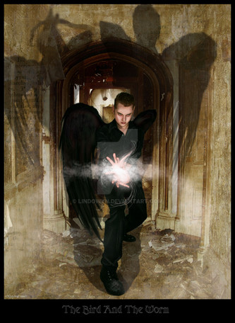 I hadn't done an angel in a while, and I haven't done a male angel at all since Malloreth, so I thought it was time to go there again. Although I believe I will be calling this character Lucien, here modeled after ~nobledeath-stock , in the future, and thinking of him as a kind of a cross between Michael the Archangel and Puck the forest spirit, for now I will just present him as he is to you: a mysterious being of shadow taking a breather after a hard day's work in his domain, from =CausticStock , and enjoying a draught of whatever it is such a being would drink to help him unwind at the end of a long day. The ravens are actually twins. They are meant to remind one of the myth of the Norse god Odin and his two all-seeing pet ravens that would inform him of all that was going on all over the world. All other images used here are royalty-free images from clipart.com .Related content