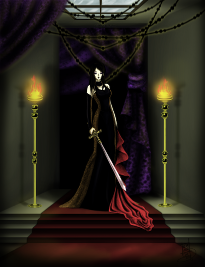 This is a depiction of Poppea Sabina, the infamous favorite mistress of the Roman Emperor Nero who eventually became his second wife. Poppea's power over Nero was thought to be at the root of many of the executions and exiles meted out upon countless unfortunates during his reign. However, she also died at Nero's hands, which is why I have the fiddle, representing the emperor, standing in as the cause of the bloodstains on Poppea's gown while Rome burns in the background. (Doubtless some of you have heard the legend of crazy Emperor Nero madly playing his fiddle as the city went up in flames.) I first became fascinated with the figure of Poppea after seeing a series of photographs by Erwin Olaf called "Royal Blood", depicting several dead personages of royal descent in a ghost-like, undead state. Poppea was among them, and I have been meaning to read up on her and depict her in my own way at some point in the future. A good on-line friend of mine shared my strong interest in Poppea, so while her body here is based on a stock photo of `lockstock , I painted Poppea's face to more closely resemble my friend. Also used here are the columns from ~sabrine-nature-stock and also some images from clipart.com .Related content