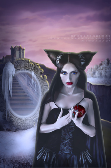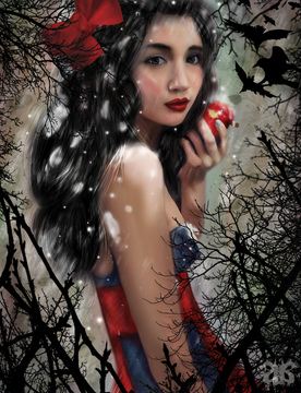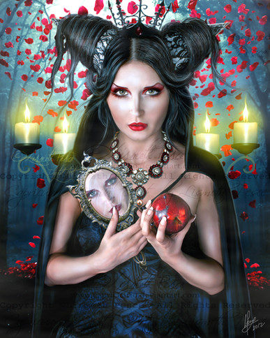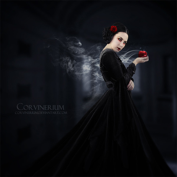 Here's number five in the Brothers Grimm series, my version of the story of Snow White, only I have of course chosen to illustrate the character of the Wicked Queen, here modeled after ~auralis-stock holding the freshly enchanted poison apple in her castle keep, created from a photo by ~black-heaven-stock . Somehow when I think of Snow White, she's the character that stands out the most to me. She represents very strongly the concepts of vanity and jealousy for me, two of the many demons that can live within the human heart, and her unfortunate fate is a lesson to those of us who would let these forces take control of our lives and dictate our actions. Again, you aren't seeing the Disney version of the Wicked Queen. You're seeing her the way I have always seen her. I always think of her as being very beautiful, but in a cold and icy sort of way. I also imagine her looking very similar in coloring to Snow White herself, the person of whom she was so jealous, because somehow I think they represent opposite sides of the same coin.... the very innocent and the very corrupt. Other images used in creating this piece from clipart.com .Related content