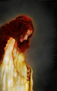 Beautiful concept and you've executed it so wonderfully! I love the orangy colors, especially where you painted it into her dress, well done M'dear!