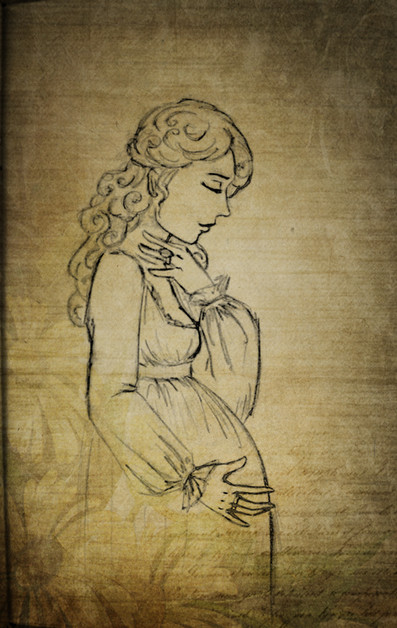 I wanted this to be a piece about hope and good omens regarding the future. I thought an excellent way to present that would be as a pregnant woman standing in the middle of ruins, looking out at the dawn and receiving a blessing from the powers that be, so here she is. She is meant to represent the ideal tomorrow. The model whose stock was used as reference for this piece is the beautiful *mizzd-stock . Reference for the castle keep ruins came from clipart.com .Related content