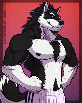 Muscles! I like the character and the way you've drawn his muzzle and eyes
