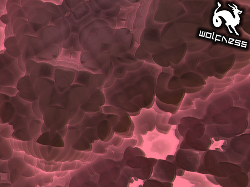 Made with stretched fractals, overlay them to create a 3d visual and added a little bit of noise.