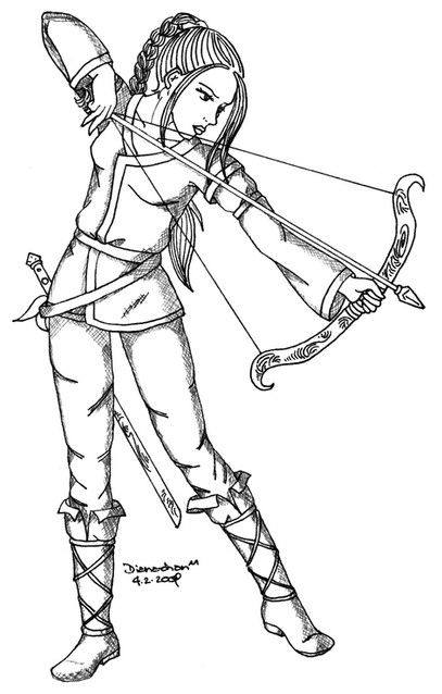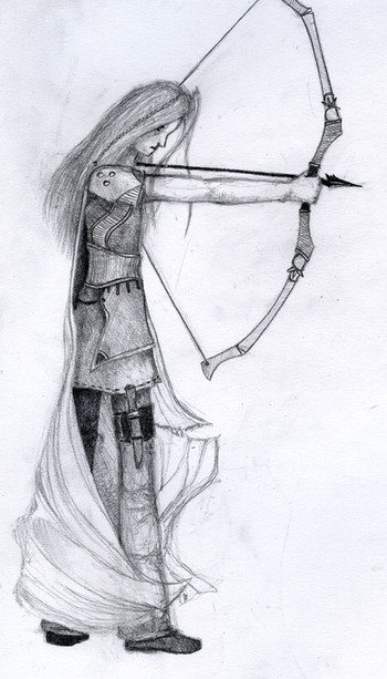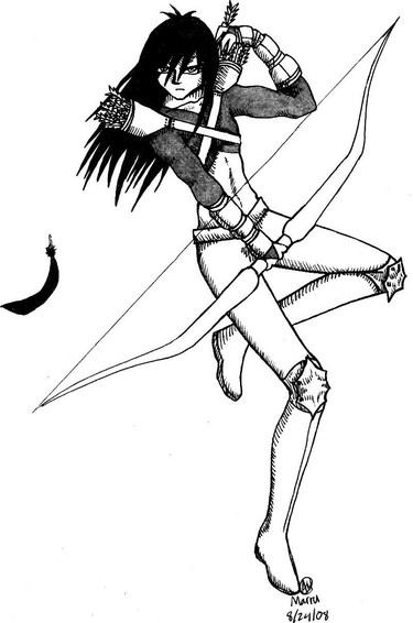 And on an anatomical note: Her shoulders. If I look at the near one, the far one looks too high. If I look at the far one, the near one way too low. I think maybe pick the near one up a little bit and lengthen her upper arm. Maybe shorten the far upper arm a tad. But don't get too carried away. Her hands are awesome (tad bumpy near the outer edge near pinky fingers), and so expressive. Matches her expression on her face. I'm not entirely sure about that really bright spot under her near arm, unless that's to hide a nice round breast... In which case, I'm not so sure a brightly glowing rack is a good idea. 0_o Oh, and try softening your outlines! She's awesome, but she looks like she might have fallen out of the original Legend of Zelda game and is slightly 8-bit.