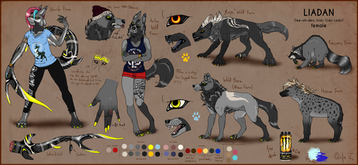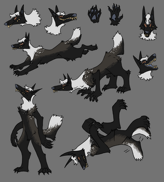 Some random info: The skulls on the armband and the bone bracelet are from small, fast birds which are very hard to catch. The wolves catch them as a symbol of hunting prowess more than for food, so the more bones they have the more they're respected by others. This guy's pretty good but not the best, a medium ranking desert werewolf.