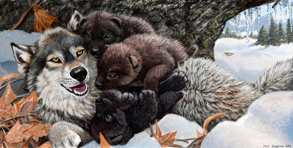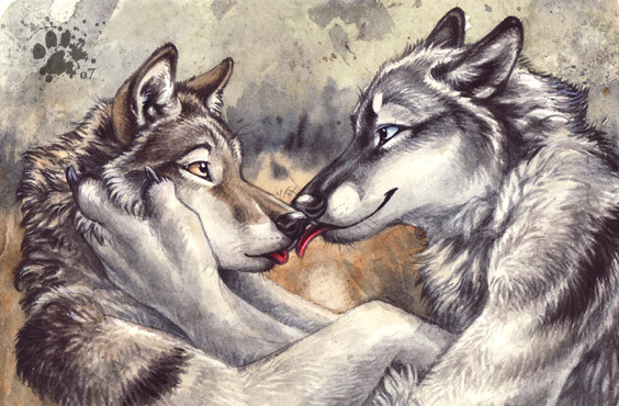 I love this picture. All of the colors are nice and warm which works well with the warm feelings between the two wolves.