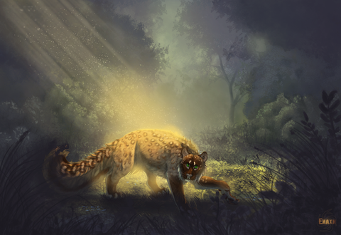 Wow this is just amazing!! The ocelot (?) and the grass are so detailed. I love how you've found a balance between the detail of photorealism and the character of more stylized drawings. The blue in the character is really amazing, and so is the soft lighting. Let me know if you want a touch of critique. Your art is awesome!
