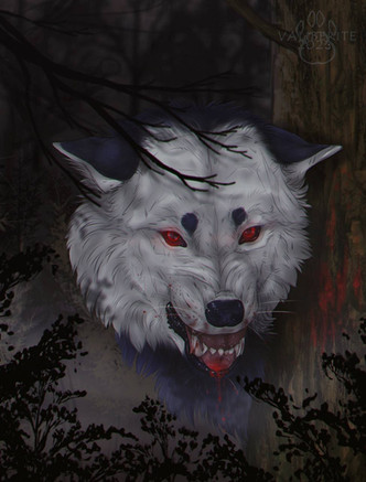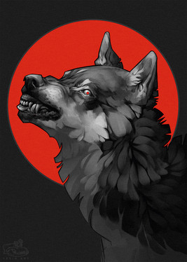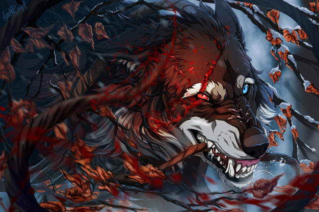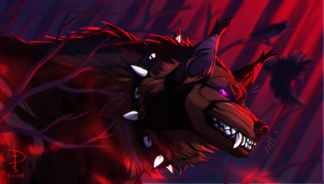 #blood #caution #danger #deadforest #death #fog #forest #grin #haze #moon #predator #red #silhouette #wolf #yelloweyes #ychcommission