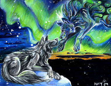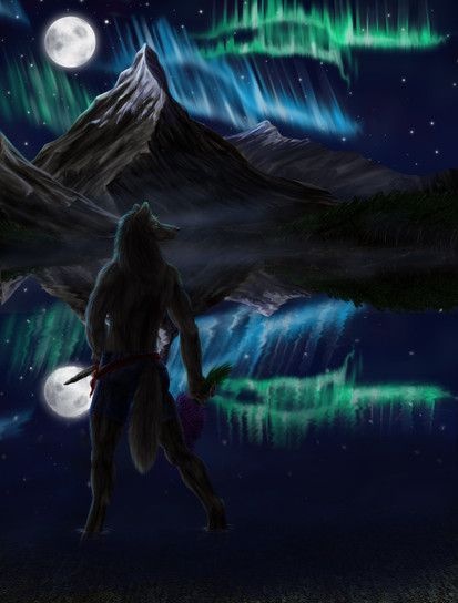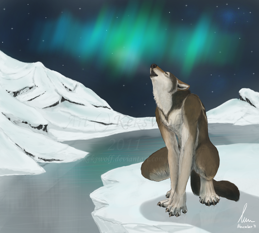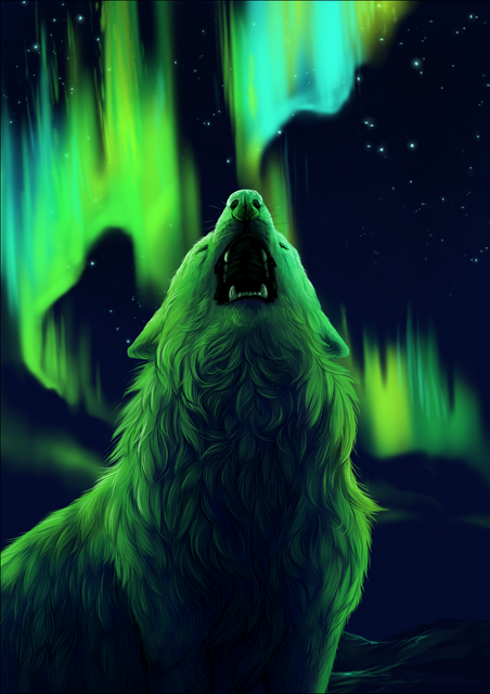 The auroras are so gorgeous and add such a nice touch to the whole piece! The Wolf looks so natural and the background has so much detail and depth!! This is beautiful; I love it!!! Β