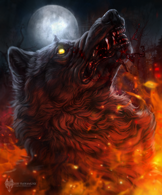 #chains #collar #grin #growl #hatred #moon #night #prisoner #wolf #fire