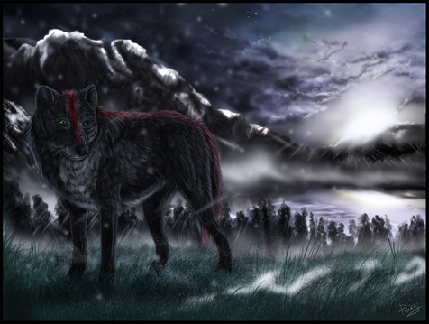 wow!!what a beautiful draw :3 i LOVE the sky and the background and also the wolf....I love everything of this work