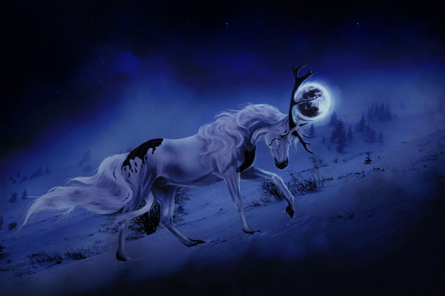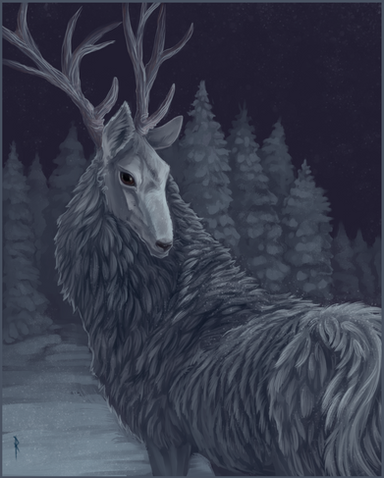 #deer #east #european #fantasy #moon #mountain #night #shepherd #snow #stars #white #wolf