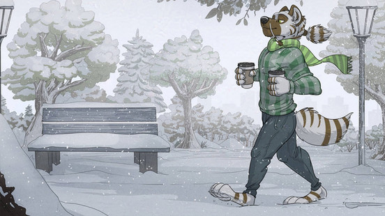I could go for a coffee right about now. Great work by the way, I like the cold weather feeling that it gives you but there is a little warmth to it (it's probably the coffee and the big walking fuzz ball)