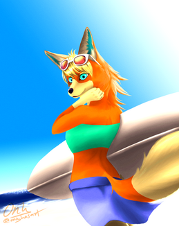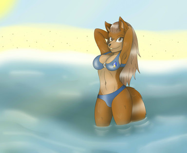 Beautiful, like how she has blue fur fits perfectly with her yellow swim suit.