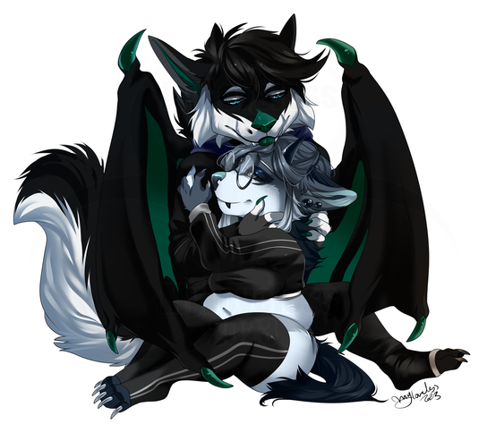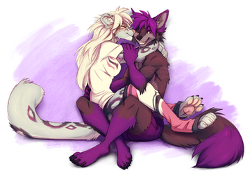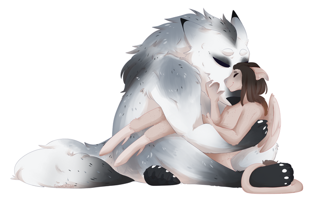 ahhhh having a good time together π thank you so much for commissioning me to make this cute idea! l loved working on it and it was great to draw such big,cute wolf in feral form ^^Commission forΒ Doom114 on FA, thank you! Β π