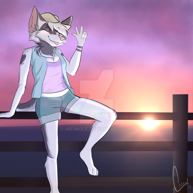 Character looks cute as always, background turned out really good, great job on the colors and shading on this.