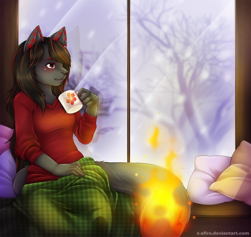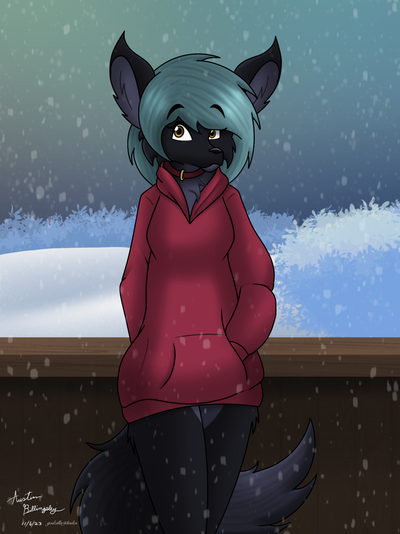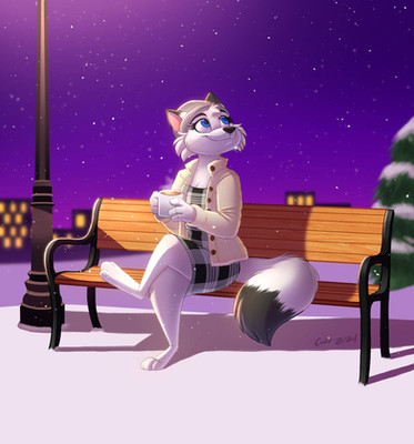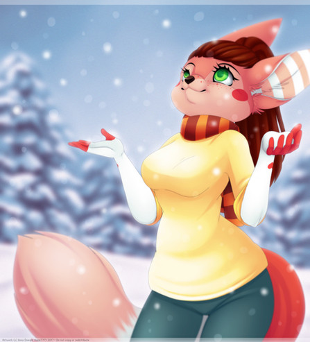 I am in love with the theme, the setting and the way the background is set up! Just a beautiful anthro wolf girl in the snow, gorgeous work!