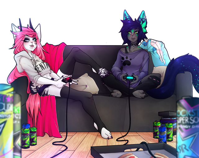 Both furry gals look very nice and cute playing video games together for this picture you've done, and I'm sure they'd be nice enough to let Whitnee play along as well!