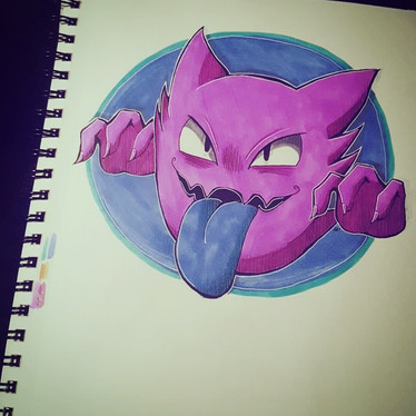 traditional Gengar <3 l'm not sure lf l like it? l don't dislike it tho. Still working on my technique ~ l've been getting questions about what do l use, it's all color pencils for coloring and the lines are marker. l hope to try coloring with markers at some point,just not yetRelated content