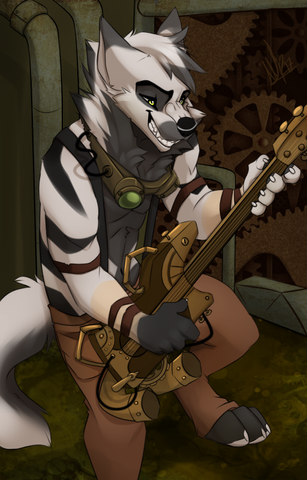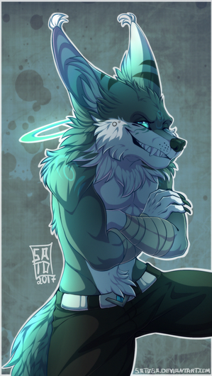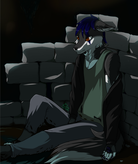 As for the eyes - in feral they are both blue - in anthro it is connect to his more tamed side, which brings the green eye into play.