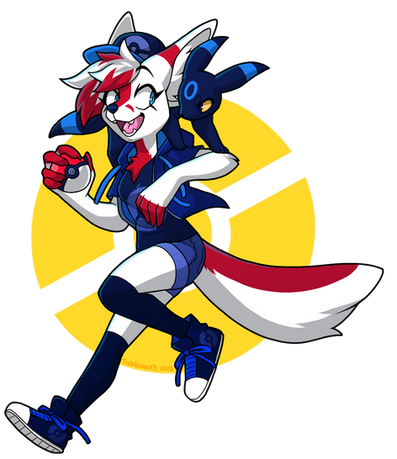 A very cute scene, awesome coloration and detail with good linage and shading effects; the character and the pokemon are both well designed and nicely emotive.