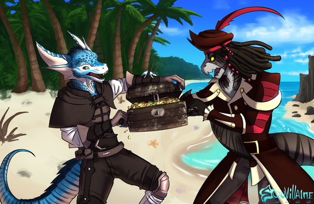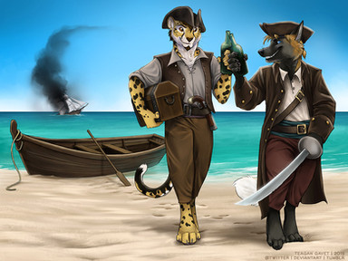 The character on the left looks pretty good as well, the sash, more grog/rum, buccaneer boots, and of course the shirtless thing going on.