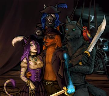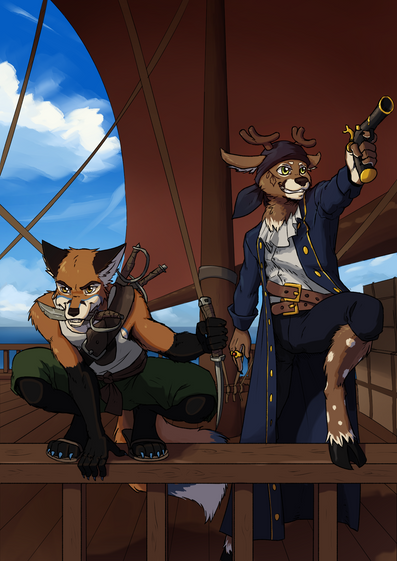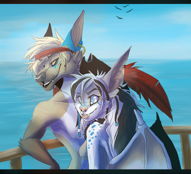 ahhhh commission for lcarusSkyhawk (fa) & Rysonanthrodog (fa) 💛had lot of fun working on the outfits <3 thank you guys 💙💜🖤🧡