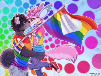 .:COMMISSION:.Gooosh got commissioned for a pride pic and including my Danika <3 and with this hella handsome hunkyboy haha just love this character <3 thank you so much! <3 <3 June pride month <3 loved working on this <3 holding the bi flag because we both are bi~