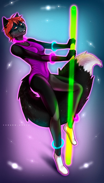 This drawing looks beautiful! I love how you did the glow of the glowsticks, it looks beautiful and really works with the rave theme! Even though this is a flat coloured drawing it still looks absolutely wonderful, the colors look great and the background colors work really well with the lights! The pose and expression look lovely, and they fit together well! It's nice to see that you're having fun doing your commissions, thats always a really nice thing and it makes the drawings turn out a lot nicer! Youve done an amazing job as always <3