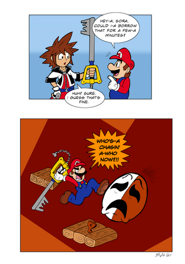 It'd be fun if there was a Mario world in KH, just to see everyone running around to that typical Mario theme.