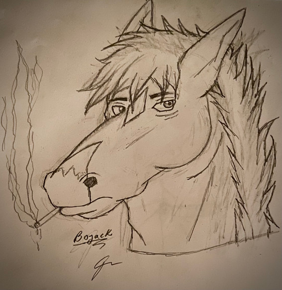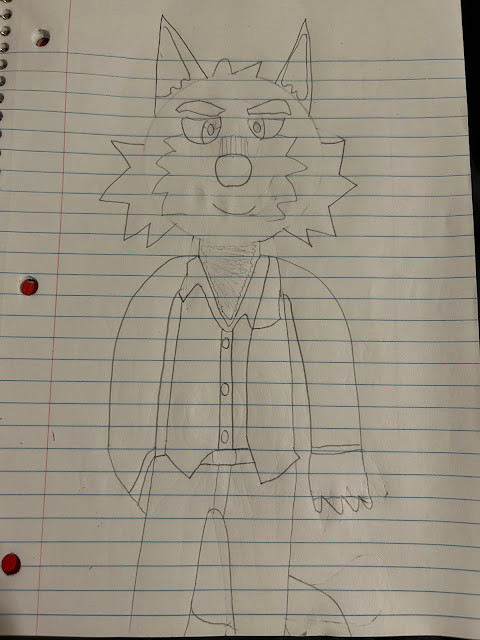 I am tired af but here ya go Randomthewolfskie*also that thing in front of his face is his mask that he wears and behind him is his hat he wears also