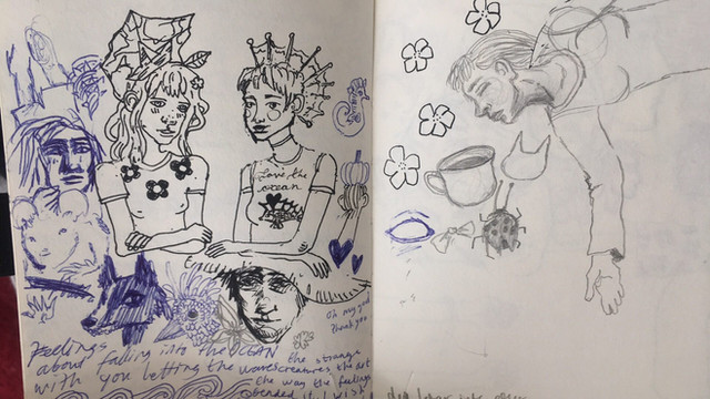 observational study thingsFrom my sketchbook. had to piece the two pages together, hence the strip in the center.