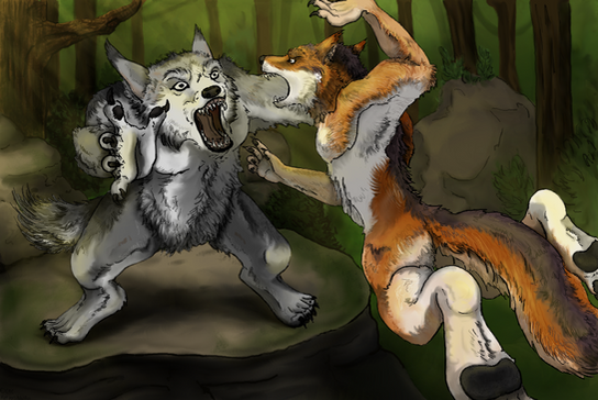 That one time when my RP character kind of lost it and attacked his friend. This is what happens when I re-read all my writing! Also still trying to figure out markers. Note: Thompson actually looks different now; he no longer has his dreadlocks, and he has way more scars than the one on the bridge of his nose. But this is illustrating a moment back before that all changes, so here's old school Thompson and the ever handsome Ron.ΒRon belongs to , Thompson is my fail wolf, and the RP is the brainchild of Nash, and myself.Β
