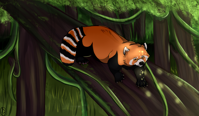 Me encanta como has hecho la hierba y el red panda... es tan mono <3