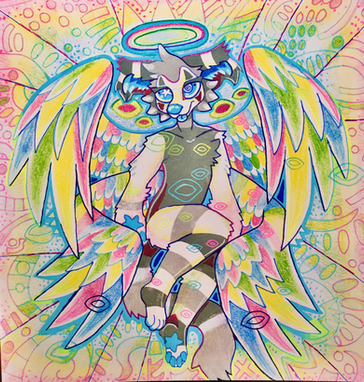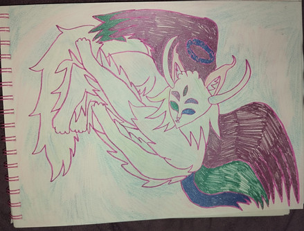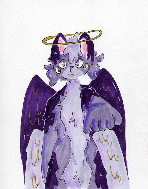 #ash #blue #marker #markerdrawing #oc #orangeeyes #originalcharacter #pen #purple #traditionalart #wings #yellowwings #thelostones #markerstraditional #fulldrawing